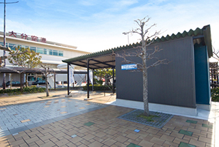 ビル外駐車場隣接(モニュメント広場)の所にあり、着替えから自転車の組み立て、更にちょっとしたメンテナンスまで可能なスペースです。